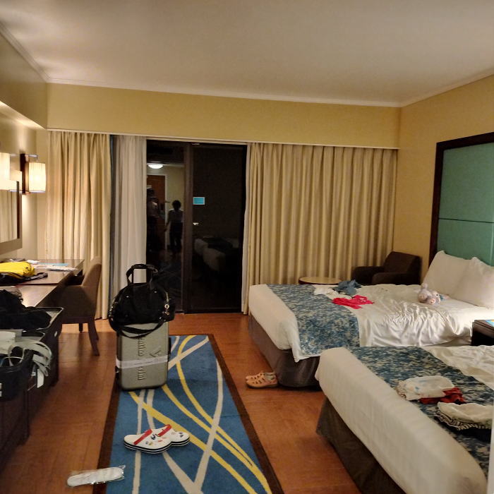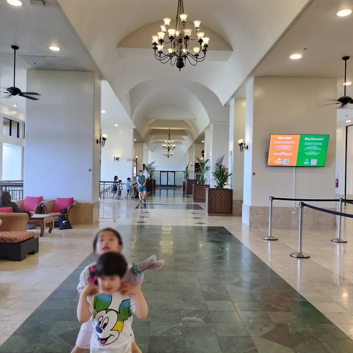 なんと、先ほど空港で仲良くなった家族もこのホテルでロビーで再会。お互い「あれ!」とにこやかに。
