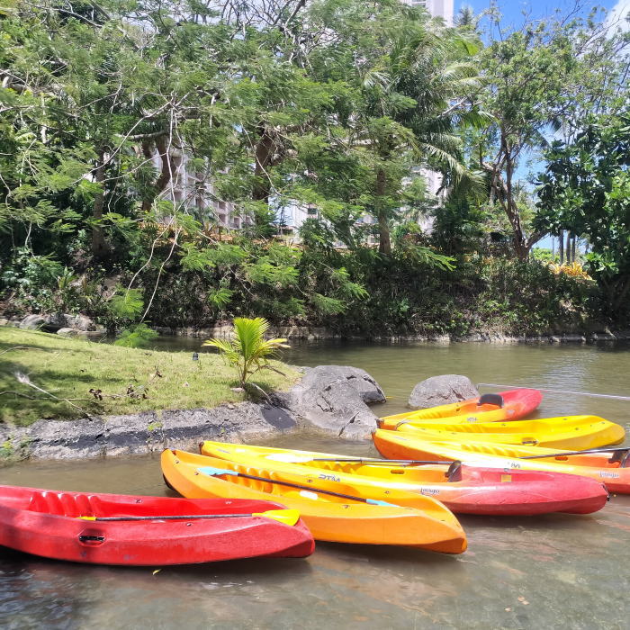 人工の大きな滝もあり、カヌーで近づくことができました。