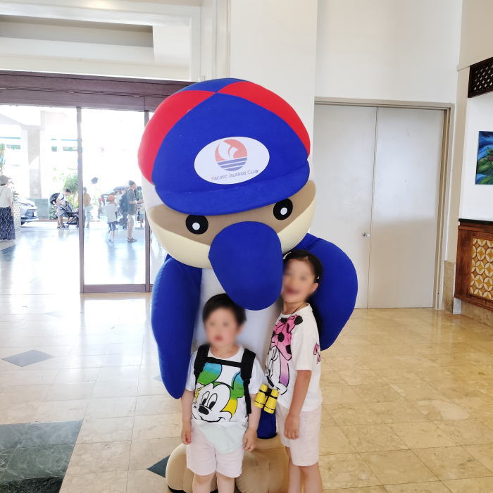 15時くらいにホテルのマスコットキャラクター「シッキー君」がロビーに現れるというので写真を撮ってもらいました。