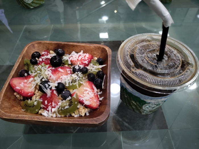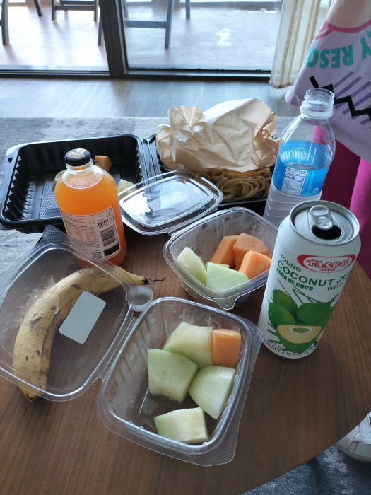 後半は朝食無しのプランだったので、1階のABCマートで買ったフルーツなどを食べました。