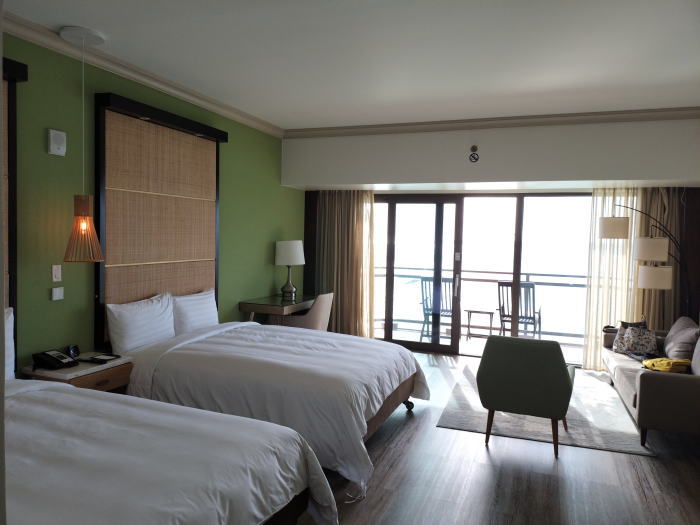 チェックイン。今回は海側のデラックスオーシャンフロントを予約していました。