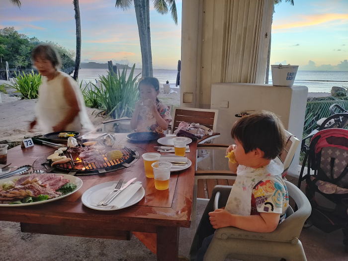ファイヤーダンスが始まる前にわちゃわちゃとバーベキュー。